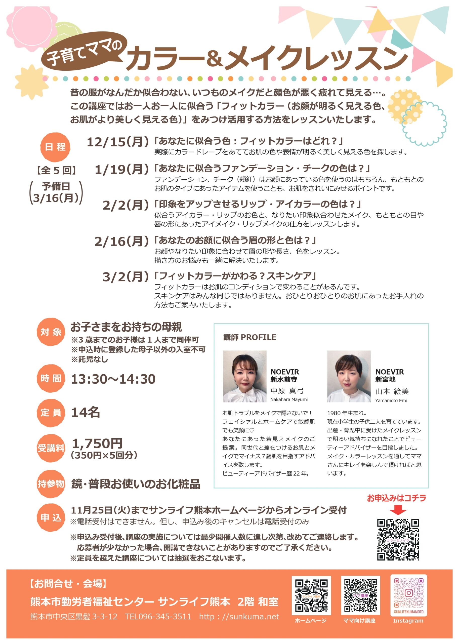 | 講座名・概要・講師 | 開催日時・受講料 | 対象 | 申込方法 |