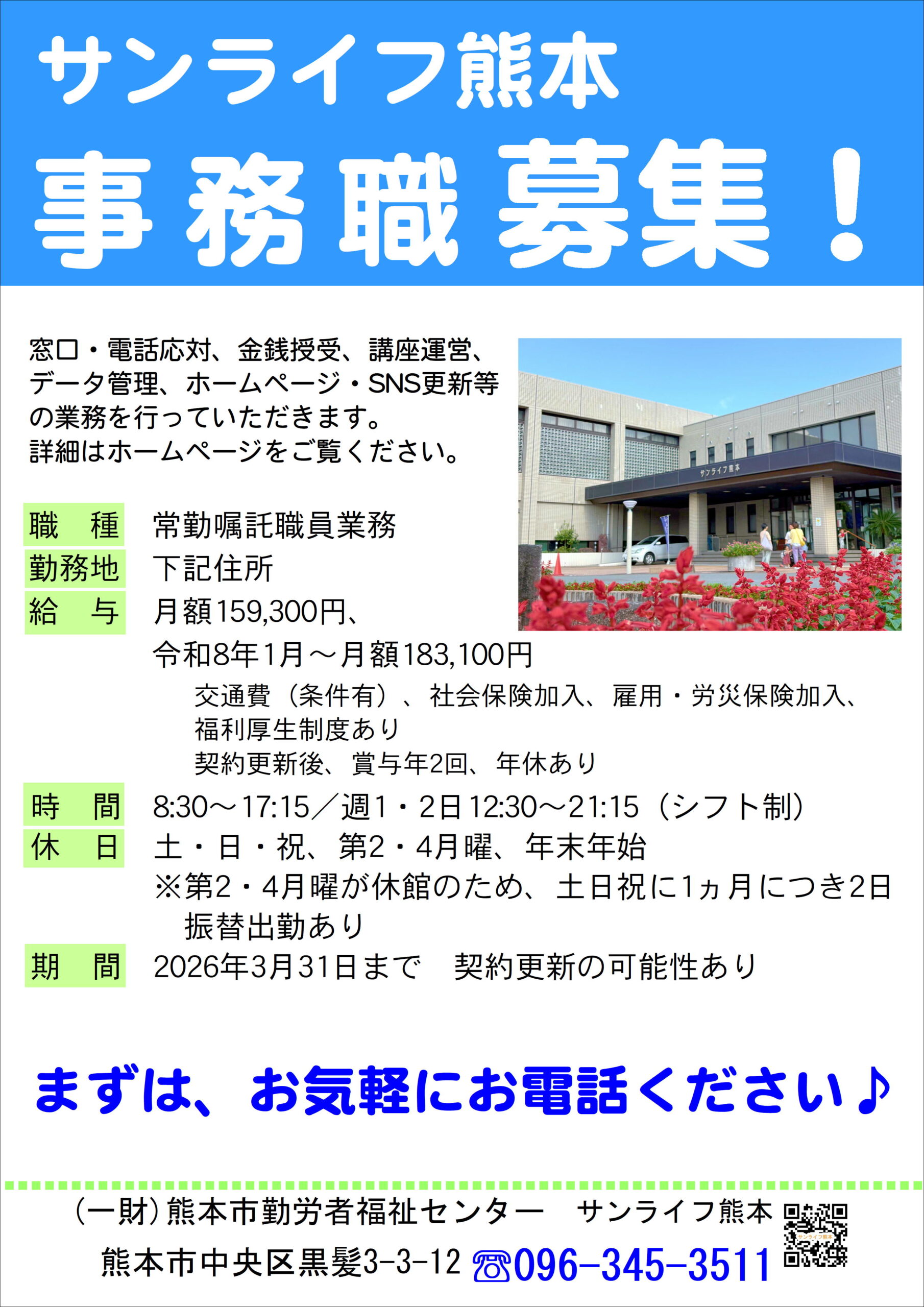 常勤嘱託職員・パート職員を募集しています。まずはお気軽にお電話ください。